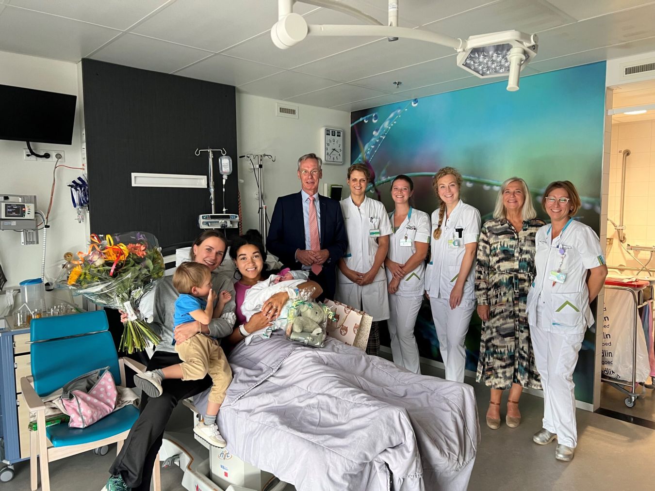 De blije moeders Ziara en Sarith namen samen met het broertje van Philou de cadeaus en felicitaties in ontvangst. Ze bedankten het team voor de zorg. “Het zijn vriendelijke, goede en kundige mensen. De sfeer in het Geboortecentrum is erg fijn.” vertelt Ziara.