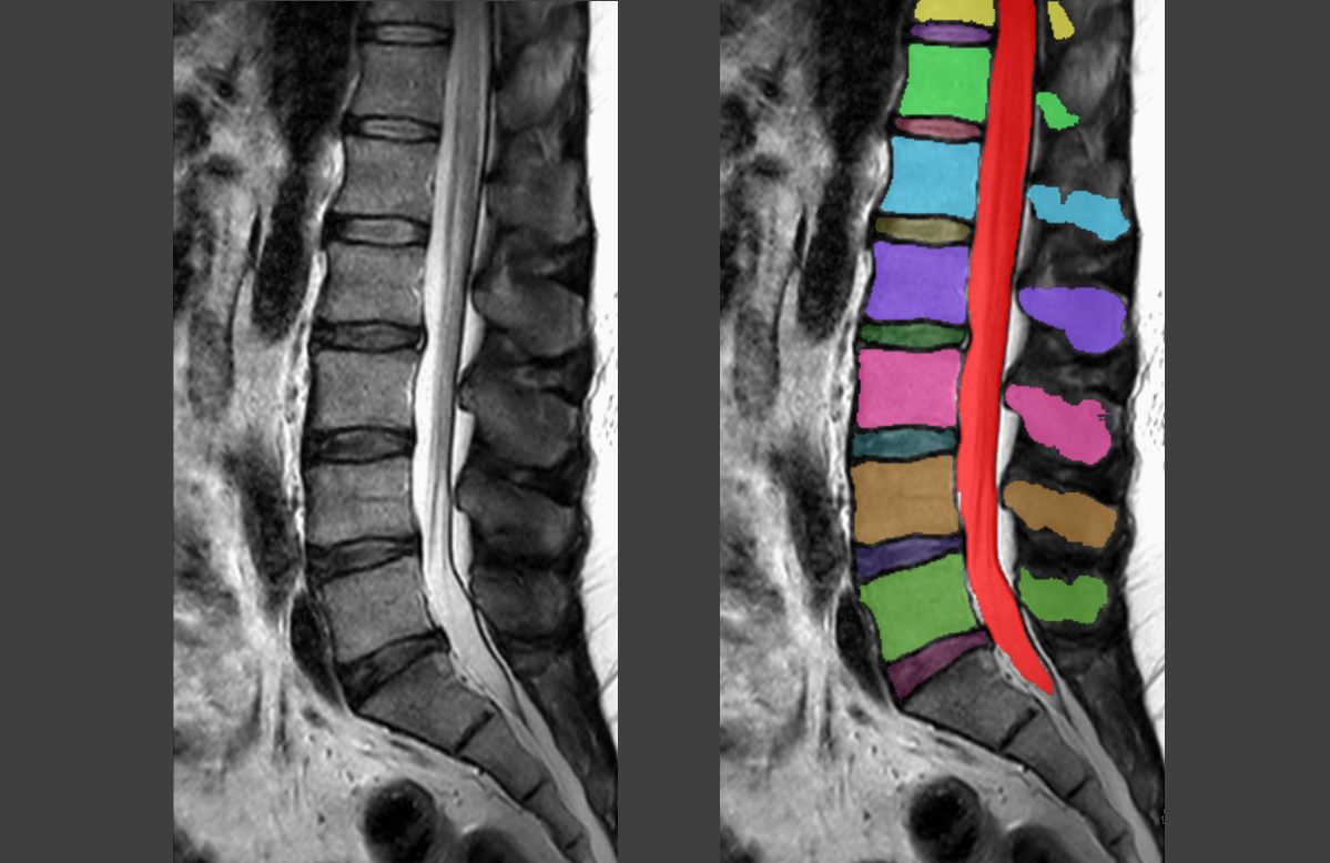 Om dat te testen trainde Van der Graaf eerst een computer om op MRI-scans de structuren in de wervelkolom te herkennen. ‘We voerden bijna vijfhonderd scans in uit vier ziekenhuizen, waarvan we alle structuren helemaal met de hand hadden ingekleurd. Zo leerde de AI hoe de rug eruitziet, en kon het algoritme vervolgens ook zelf de onderdelen inkleuren en eventuele afwijkingen opsporen.’