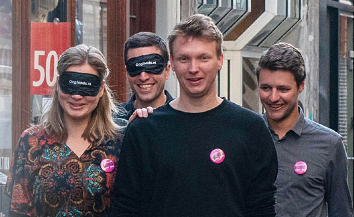 De allereerste Blind Walk die Utrecht ooit heeft gezien, vindt plaats op vrijdag 21 juni. Met oogmaskers op wandelen honderden duo’s de zonsondergang tegemoet om zoveel mogelijk geld in te zamelen voor oogonderzoek.