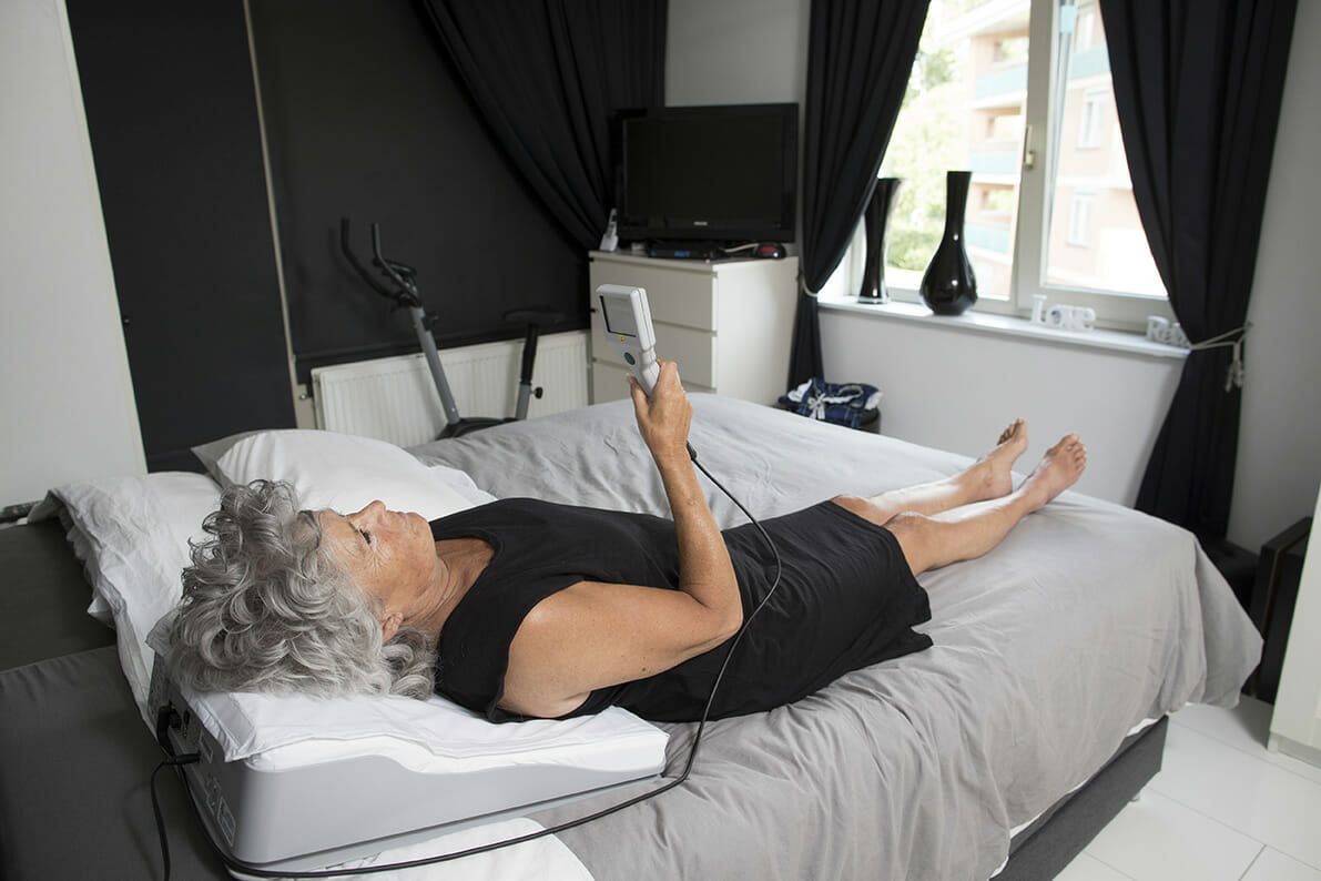De patiënt krijgt een speciaal kussen (zie bijgeleverde foto) mee. Daarin zit een apparaatje dat contact legt met de sensor als de patiënt op het kussen gaat liggen. Die registreert gedurende 18 seconden de druk in het hart. Vervolgens worden de gegevens via een beveiligde internetverbinding naar het ziekenhuis gestuurd. Het kussen kan overal ter wereld gebruikt worden, dus kan ook mee op vakantie. ,,De cardioloog kijkt als het ware over de schouder mee.’’