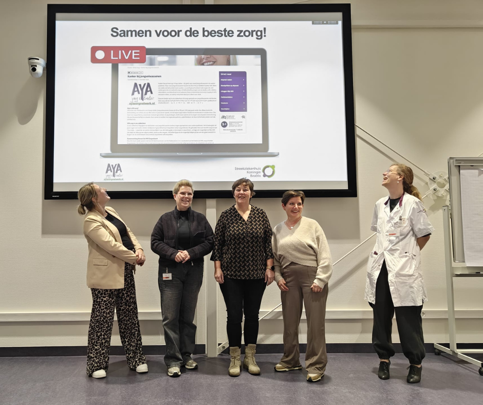 Het AYA-team van het SKB werkt samen met het Radboudumc en is onderdeel van het Nationaal AYA ‘Jong & Kanker’ Zorgnetwerk. Binnen dit netwerk worden AYA-zorgverleners ondersteund en geschoold, wordt wetenschappelijk onderzoek gedaan naar kanker bij jongvolwassenen en expertise gedeeld. Zo blijft alle kennis en kunde over kanker op jongere leeftijd steeds actueel. Het AYA Zorgnetwerk is opgebouwd uit zes regionale zorgnetwerken waardoor AYA-zorg bij iedere jongvolwassen kankerpatiënt zo dichtbij als mogelijk voor handen is. Het zorgnetwerk groeit omdat steeds meer ziekenhuizen en professionals uit de eerste lijn aansluiten. Samen gaan we uit van het principe: ‘Zorg, dichtbij huis als het kan, verder weg in een AYA-centrum als het moet.”