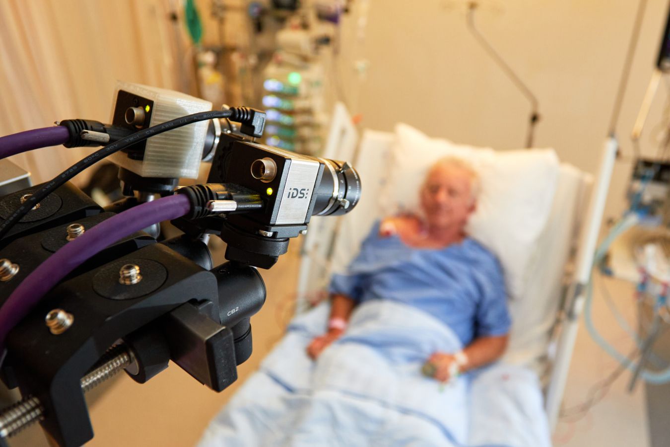 “Op dit moment kunnen we zo al op afstand de hartslag van een patiënt monitoren. Daar komt de ademhaling, temperatuur, beweging nog bij…. Het voordeel van een slimme camera voor de patiënt is dat ze geen apparaten aan hun lichaam dragen.”