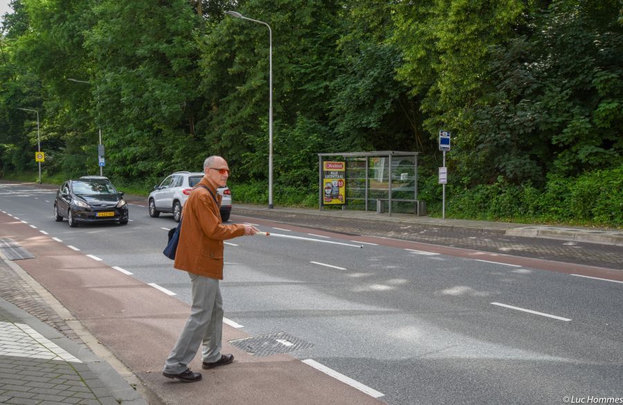 Utrecht, juli 2021 – Stel je eens voor: je bent blind of slechtziend en je komt aan op een station waar je de bus wilt nemen naar de eindbestemming. Terwijl je met je stok de geleidelijn volgt bots je frontaal op een lantaarnpaal. En om de weg over te steken naar de bushalte moet je je leven wagen tussen de voorbijrazende auto’s.