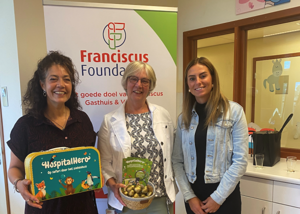Foto: v.l.n.r. Nicole Donkel, bestuur Hospital Hero app, Anneke van...