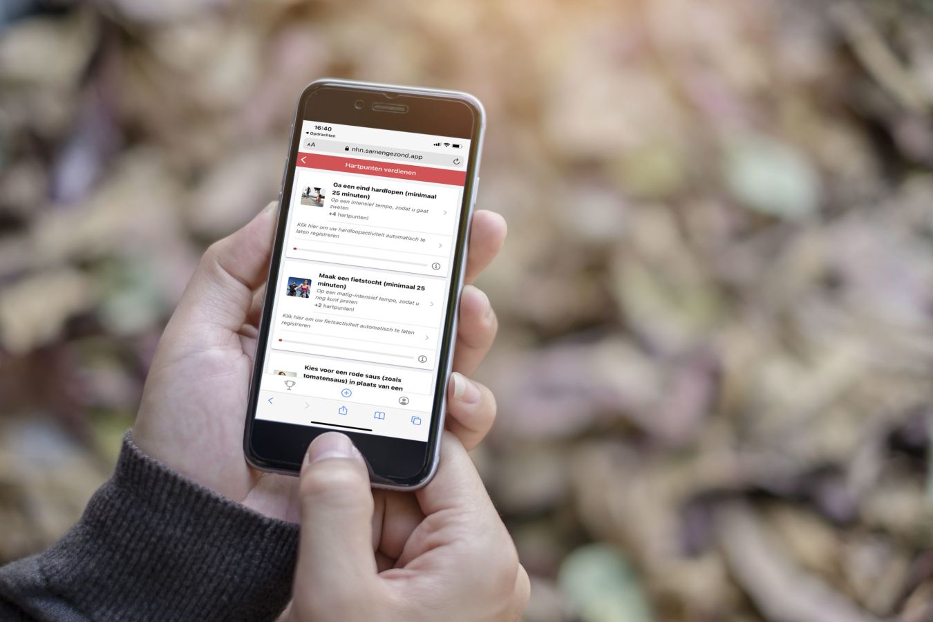 De webapp wordt gratis ter beschikking gesteld. “Elke deelnemer stelt zijn eigen targets in binnen het programma. Kan je 100 meter lopen op een dag, dan daagt het programma je uit om elke keer letterlijk een stapje verder te gaan”, verduidelijkt universitair hoofddocent TU/e en cardioloog dr. Hareld Kemps van het Maxima MC. “Door middel van motiverende berichten en leefstijl uitdagingen activeren we mensen om aan de slag te gaan en vooral: aan de slag te blijven.”