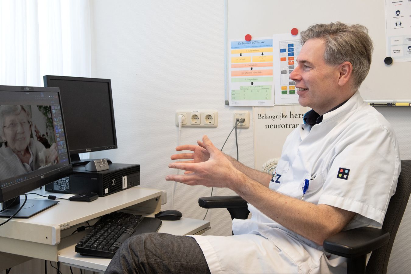 Volgens Tilanus is het eerste intakegesprek altijd fysiek in zijn spreekkamer, maar daarna mogen patiënten zelf kiezen. “Jongeren kiezen heel vaak voor een digitaal consult, maar ook bij ouderen zien we dat ze het fijn vinden om te beeldbellen.” De psychiater ziet zowel bij de jongere als de oudere generatie geen technologische moeilijkheden. “Zolang ze een emailadres hebben, moet het lukken om te bellen.”