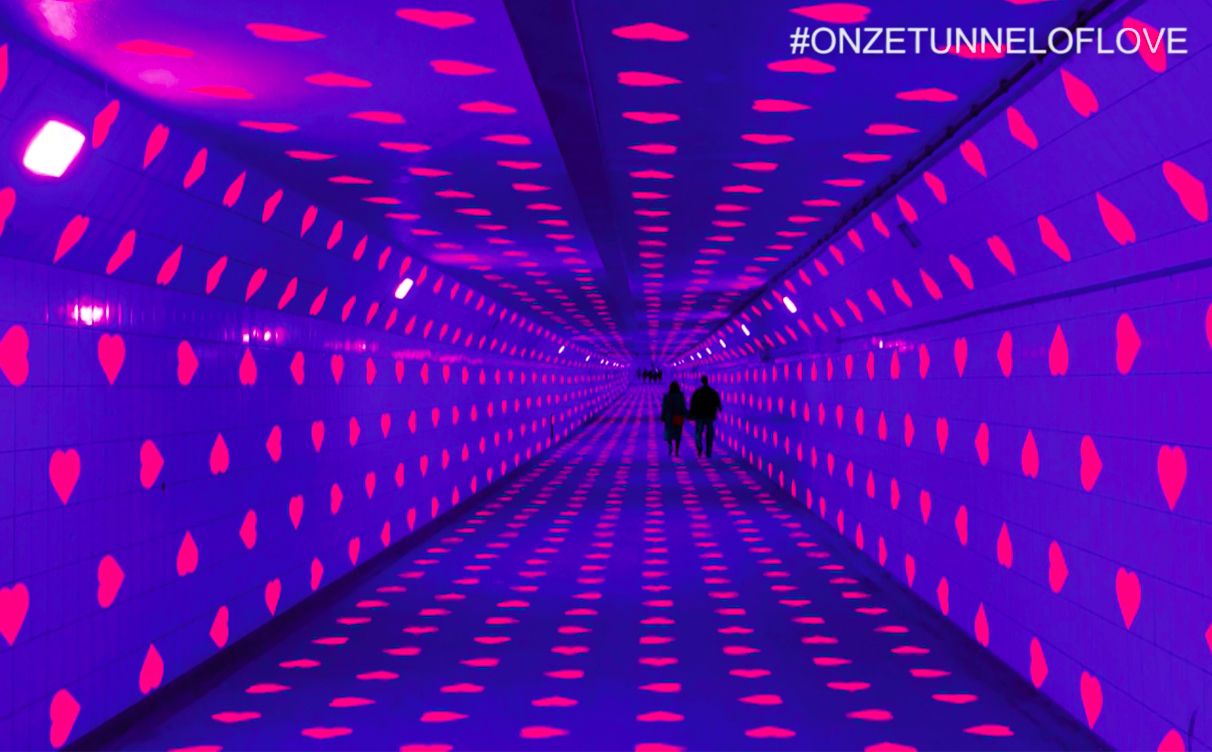 Wie nog niet van de Maastunnel hield, moet in de week van 8 t/m 15 februari goed z’n best doen om dat vol te houden. Tijdens de Rotterdam Art Week wordt het voetgangersgedeelte van de Maastunnel door studio VOLLAERSZWART omgetoverd tot de Tunnel of Love. Een liefdesverklaring van het kunstenaarsduo aan alle Rotterdammers en een verjaardagscadeau voor de Maastunnel.